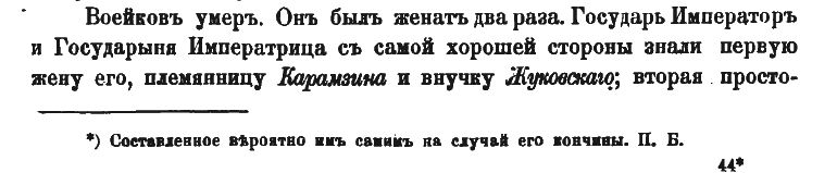 Василий Андреевич Жуковский (родился в 1783) был дедом первой жены Воейкова (родилась в 1795).
